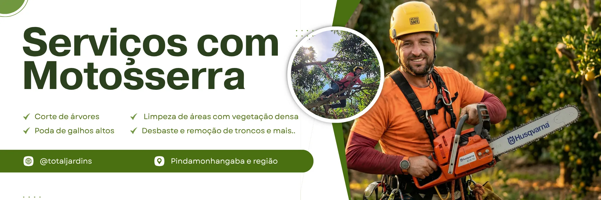 Total Jardins é uma empresa especializada em serviços de jardinagem, oferecendo soluções práticas e eficientes para manutenção e cuidados com áreas verdes. Com atuação profissional e uso de equipamentos adequados, como motosserra, a empresa realiza cortes, podas e outros serviços essenciais para manter seu jardim sempre bonito, seguro e bem cuidado.